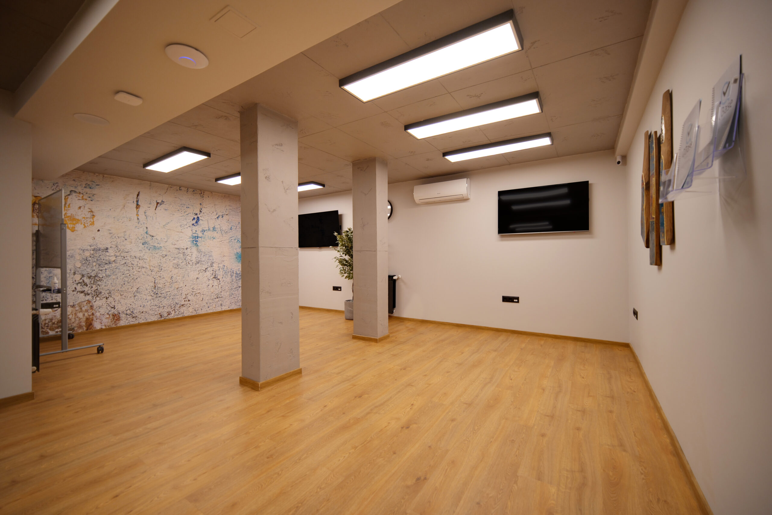 Зала Q2 е светло, минималистично и комфортно пространство, проектирано за групови практики, творчески работилници, обучения и лекции в по-интимен формат. Разполага с всичко необходимо, за да създадете спокойна и вдъхновяваща среда за вашето събитие.